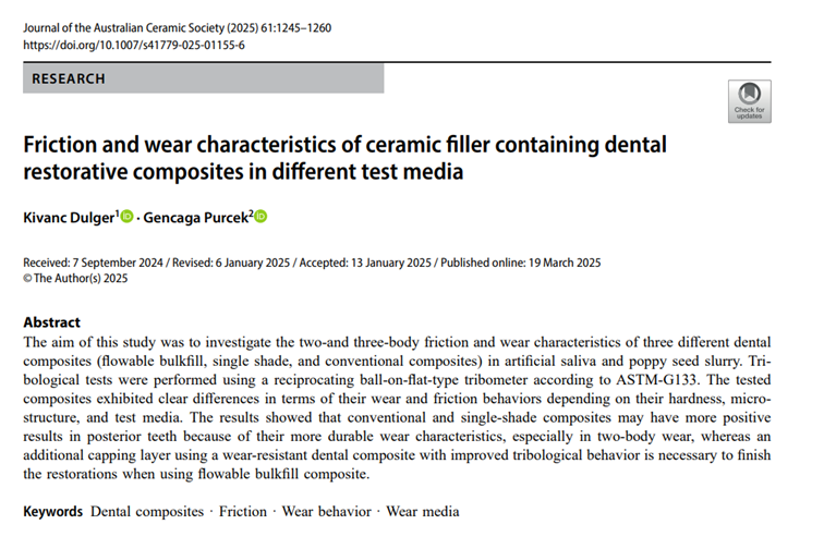 We are pleased to share a new scientific paper on “Two- & Three-Body Wear of Dental Composites” performed by UTS TRIBOLOG".